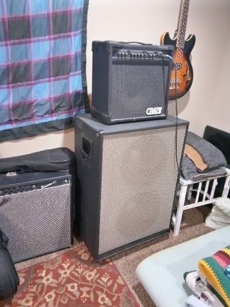 - Amplifiers and Speakers: Crate GX-30M, Fender 12×2 cabinet, Fender Bassman 60