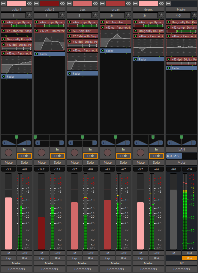 - x42 plugins: dynamic compressor, parametric equalizer, digital peak limiter